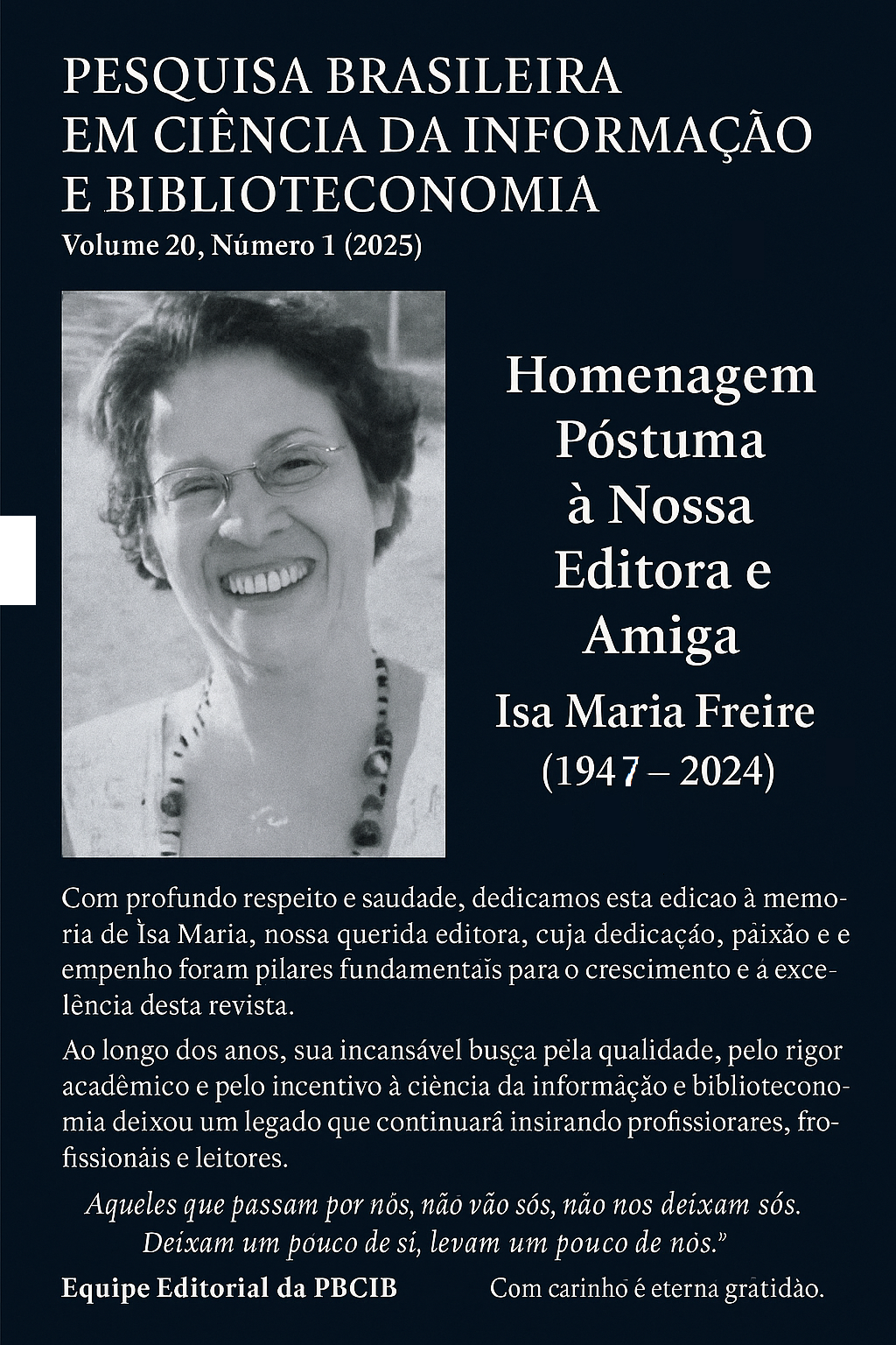v. 20 n. 1 (2025)Dedicamos este número à Professora Isa Maria Freire, fundadora deste periódico e inspiração permanente na trajetória da Ciência da Informação